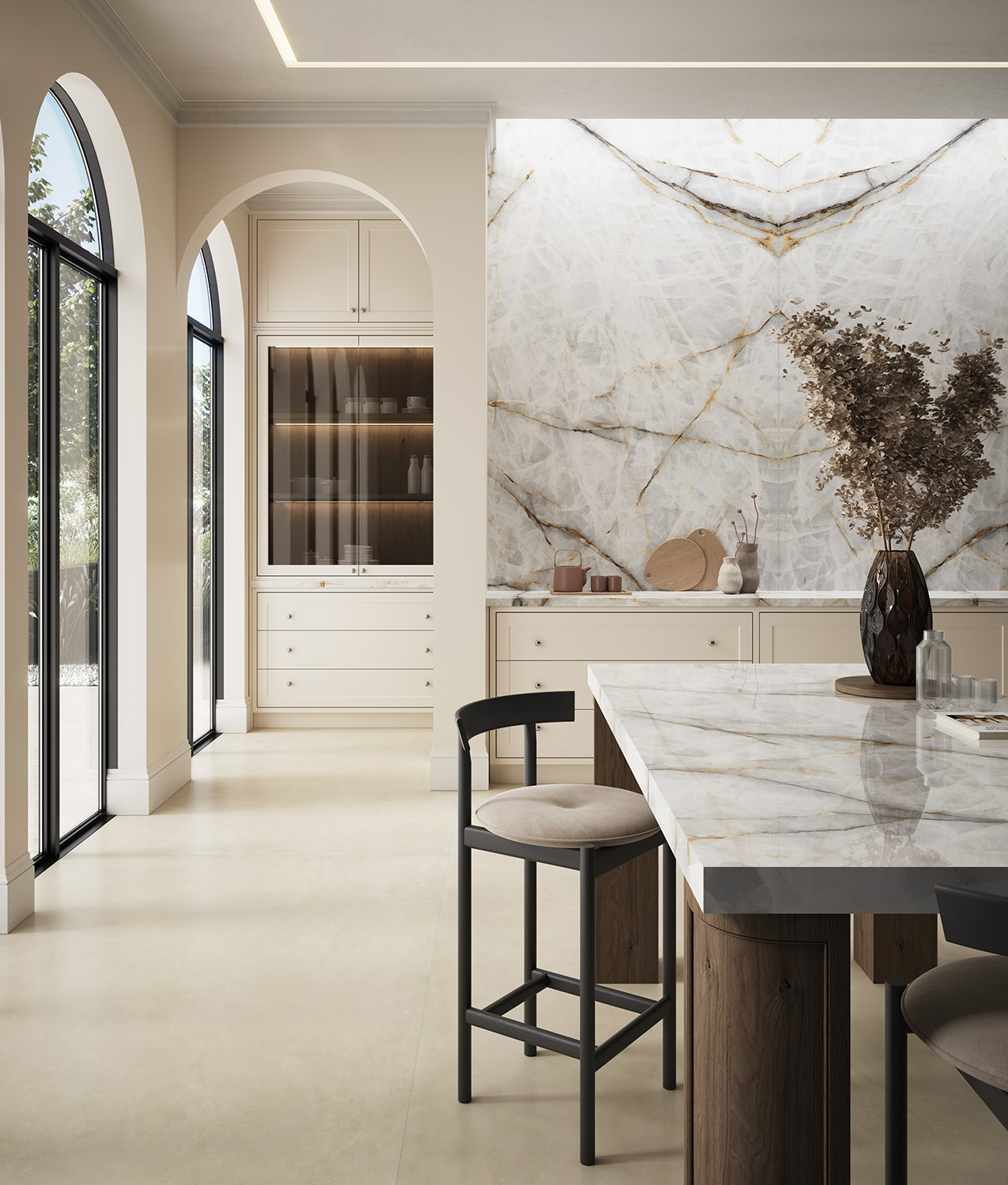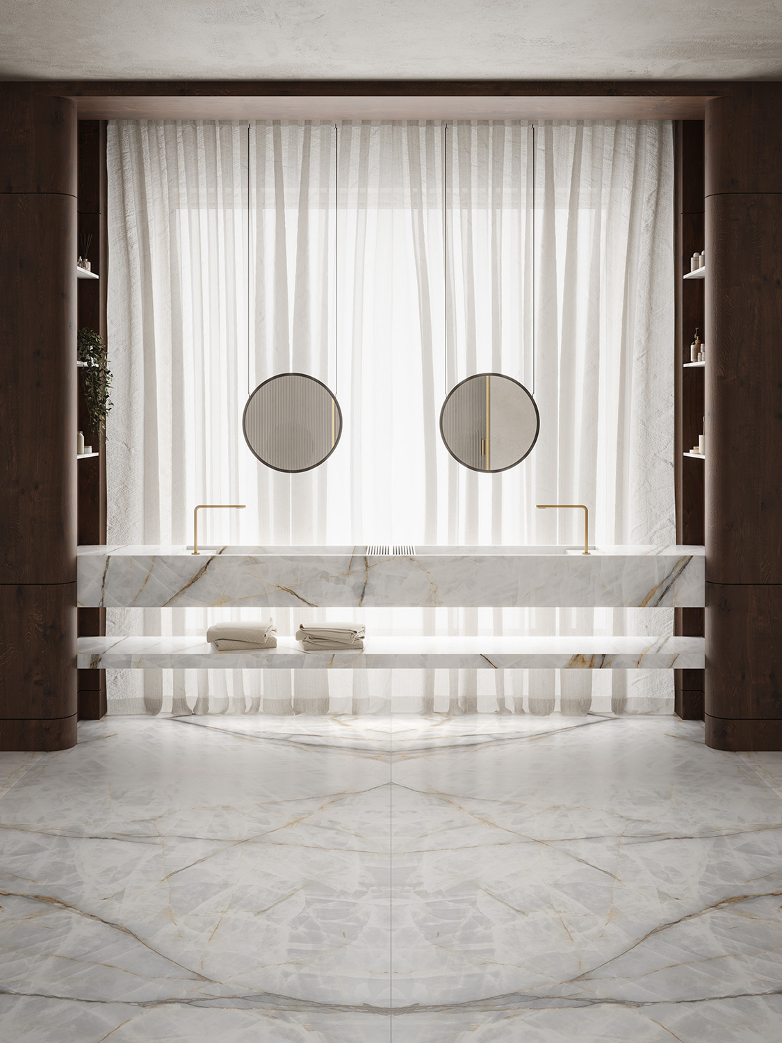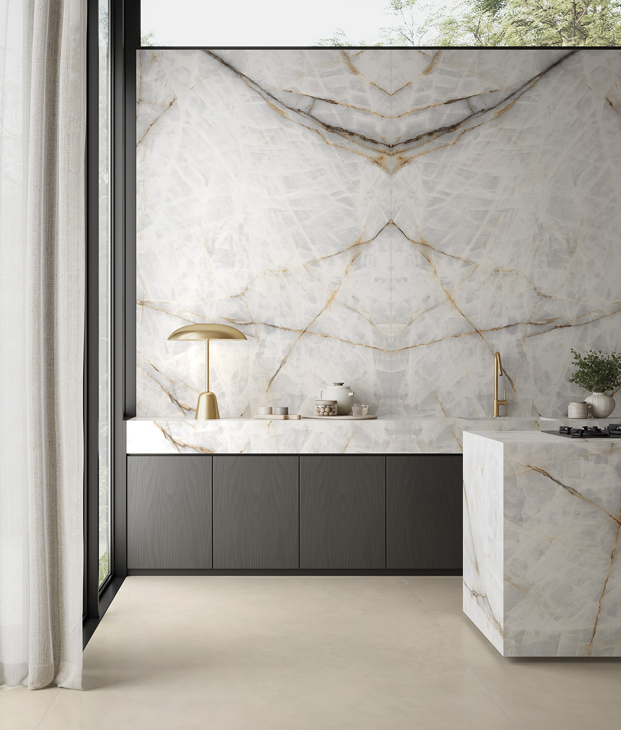 Sezer Koçak Marble, Ascale’ın en prestijli koleksiyonlarından biri olan Aura Lux White porselen levhalarını Türkiye’de mimari projelere kazandırmaktadır. Beyazın saf ışıltısı ile altın ve gri damarların kusursuz uyumunu buluşturan bu özel yüzey, mekânlara lüks, modern ve zamansız bir estetik kazandırır.